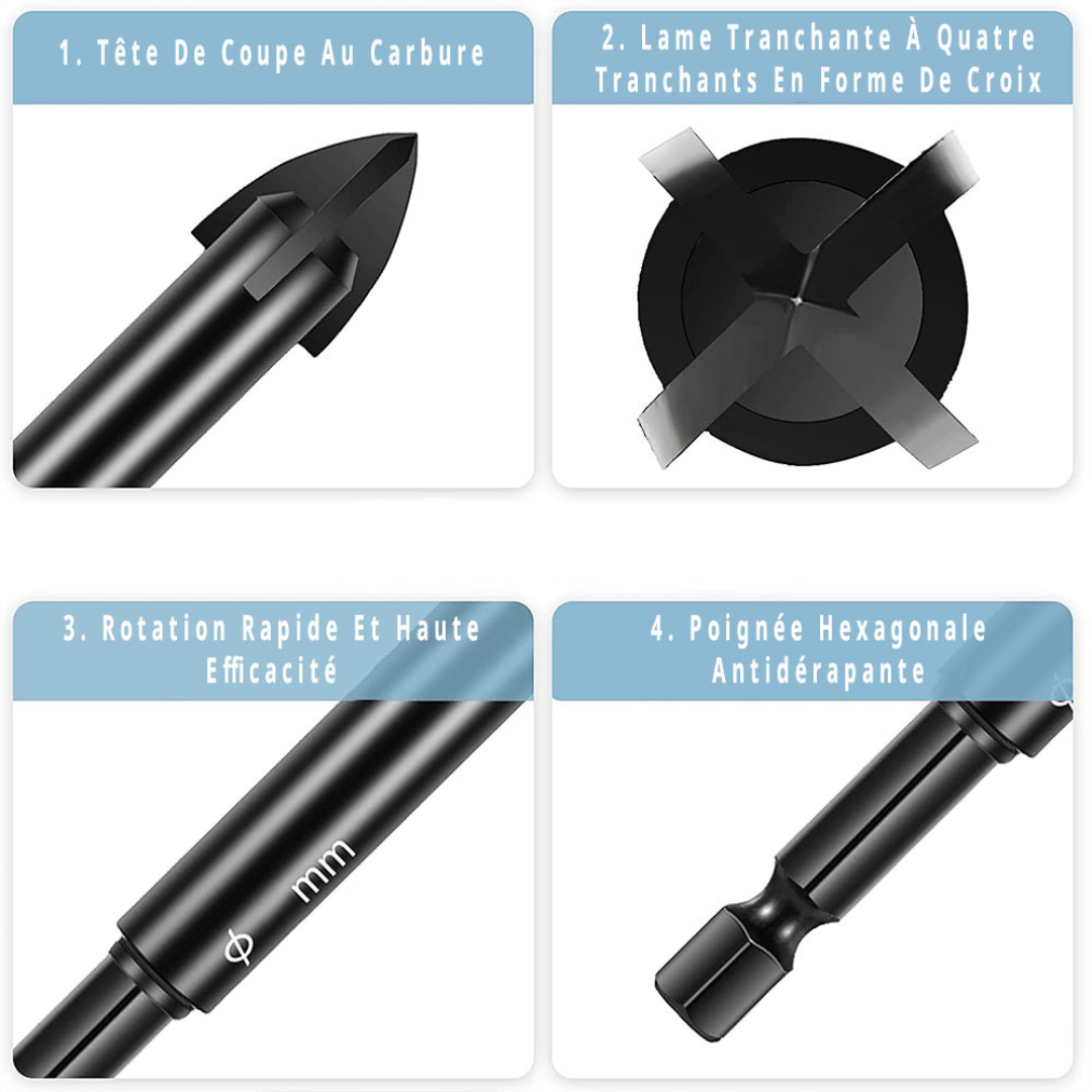 Le foret triangulaire est idéal pour fournir un perçage lisse et précis dans le verre, La céramique, Les carreaux vitrifiés, Le marbre, Les carreaux, Les murs de briques, Le bois, Le plastique.
